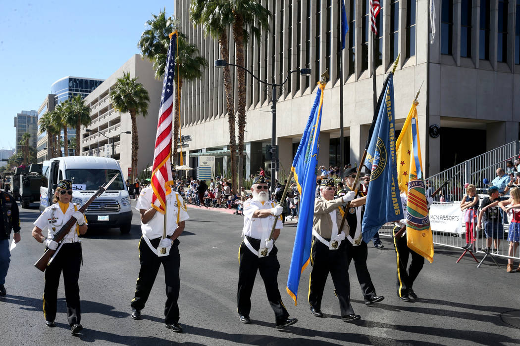 The event, billed as the largest Veterans Day parade west of the Mississippi River, featured many elected officials, including Gov. Steve Sisolak, Las Vegas Mayor Carolyn Goodman, U.S. Sen. Jacky Rosen and Rep. Susie Lee.