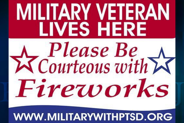 Military veterans with post-traumatic stress disorder who might be startled by Fourth of July fireworks should put signs in their front yards asking neighbors to be considerate, a fireworks distributor says.