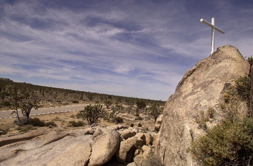 The metal cross that was stolen was erected in the late 1990s by the memorial's longtime caretakers, Henry and Wanda Sandoz of Yucca Valley.
