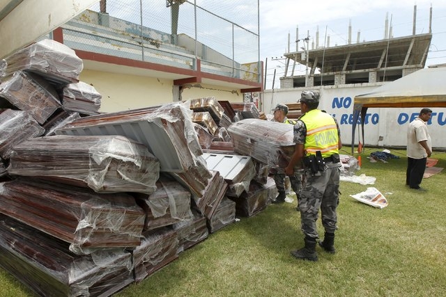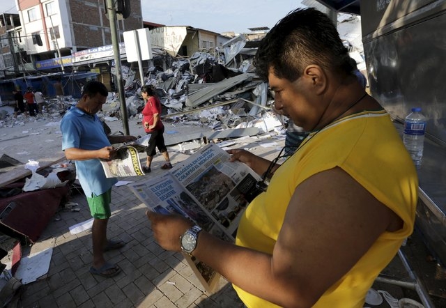 In other parts of Portoviejo, people stole clothes and shoes from wrecked buildings as police tried to control crowds. Armed men robbed two trucks carrying water, clothes and other basics to quake-hit beach locality Pedernales from the city of Guayaquil, authorities said, as fears of looting spread.