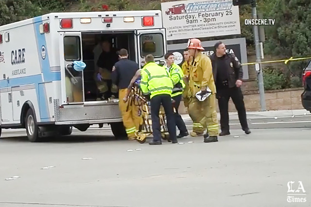 WHITTIER, Calif. — A California police officer was killed and another wounded in a shooting Monday while they were trying to help a man who had been in a traffic accident in Whittier, officials said.