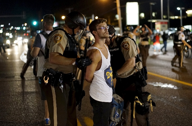 FERGUSON — About 150 people have been arrested during several days of protests around Ferguson, Missouri, where largely peaceful demonstrations over police shootings of unarmed black men have been punctuated by flashes of violence.