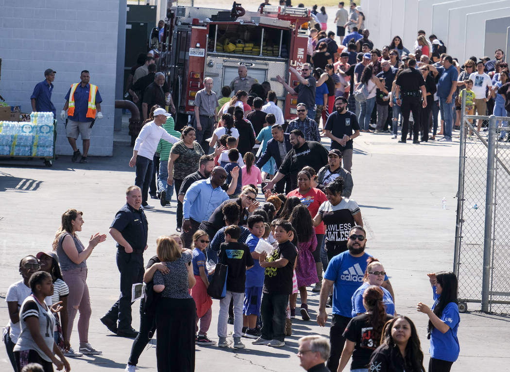 Panicked parents had to wait hours before being reunited with them at a nearby high school.