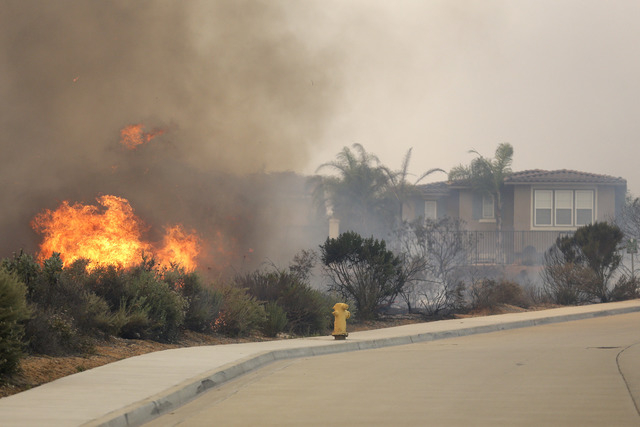 The biggest concern late Wednesday was in San Marcos north of San Diego, where a new blaze broke out in the late afternoon, some 21,000 evacuation notices were sent to residents and a California State University campus with nearly 10,000 students was evacuated. At least five structures there were destroyed, authorities said, but it wasn’t immediately clear how many were homes.