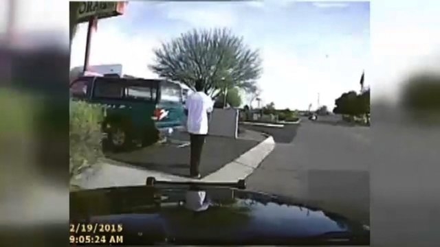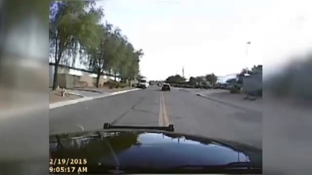 Video of the incident, recorded February 19 by the dashboard cameras of two Marana police cars, shows one of the cars running into a suspect with who had a rifle in the city about a half hour from Tucson.