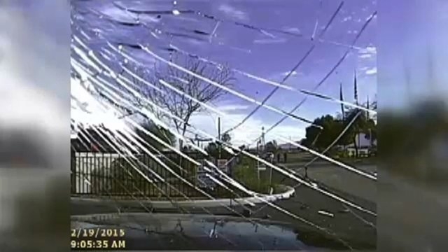 Another patrol car zooms past, runs into the man from behind, then hits a short cinder block wall next to a driveway. Video from Officer Michael Rapiejko’s camera shows Rapiejko’s vehicle running into Valencia, with the windshield smashing as the car hits the wall.
