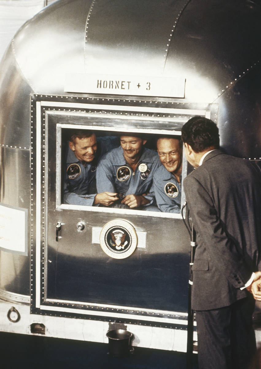 “I guess you’re about the only person around that doesn’t have TV coverage of the scene,” Mission Control radioed Collins after the landing.