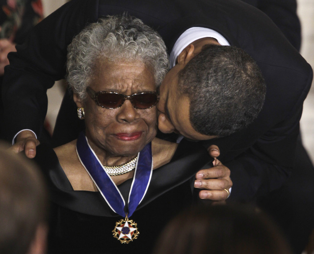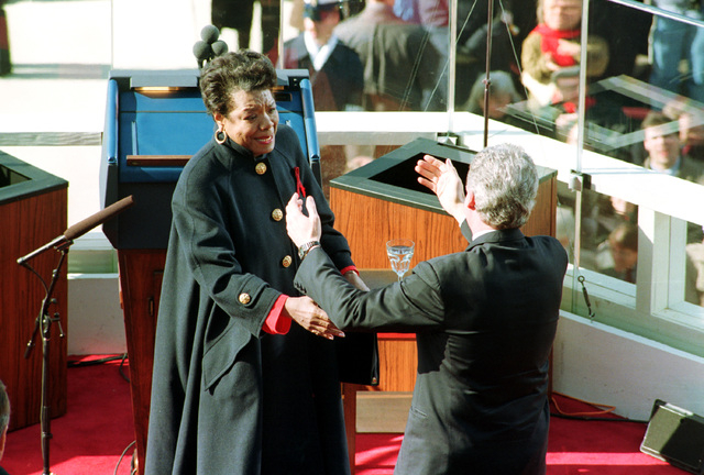 The world was watching in 1993 when she read her cautiously hopeful “On the Pulse of the Morning” at President Bill Clinton’s first inauguration. Her confident performance openly delighted Clinton and made publishing history by making a poem a best-seller, if not a critical favorite. For President George W. Bush, she read another poem, “Amazing Peace,” at the 2005 Christmas tree lighting ceremony at the White House. Presidents honored her in return with a National Medal of Arts and the Presidential Medal of Freedom, the country’s highest civilian honor. In 2013, she received an honorary National Book Award.