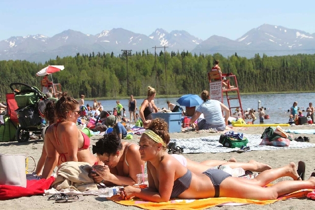 The weather feels like anywhere but Alaska to 18-year-old Jordan Rollison, who was sunbathing with three friends and several hundred others lolling at the beach of Anchorage’s Goose Lake.