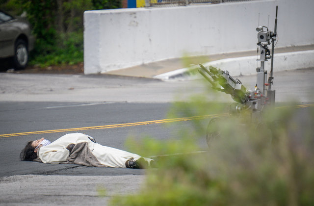 WBFF, which is owned by Sinclair Broadcast Group, said a bomb robot scanned the man for nearly an hour before officers removed his clothing, picked him up and carried him to an armored police vehicle.