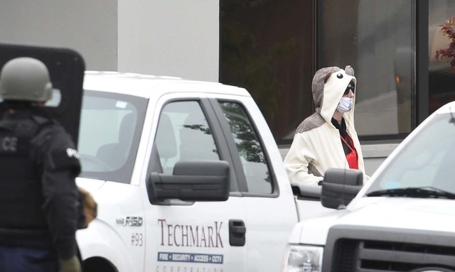 Station News Director Mike Tomko said on the station’s website that the man was wearing a white, one-piece panda suit with a surgical mask and sunglasses.