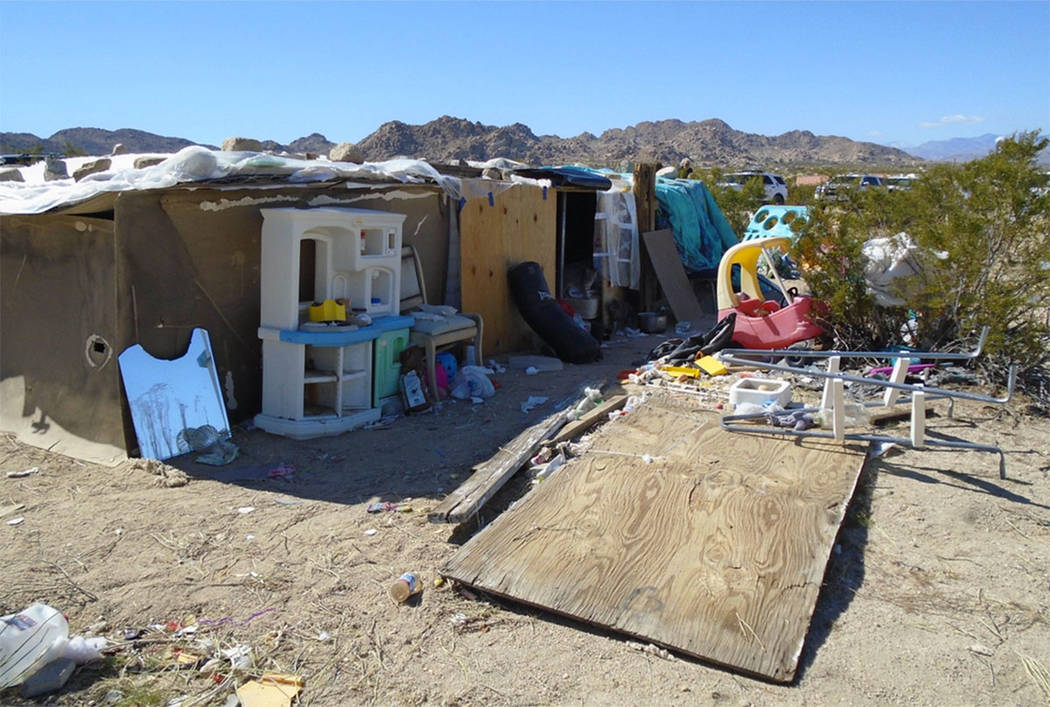 Deputies noticed the ramshackle shelter Wednesday afternoon while conducting a check of the area near Joshua Tree east of Los Angeles, according to the San Bernardino County Sheriff’s Department.