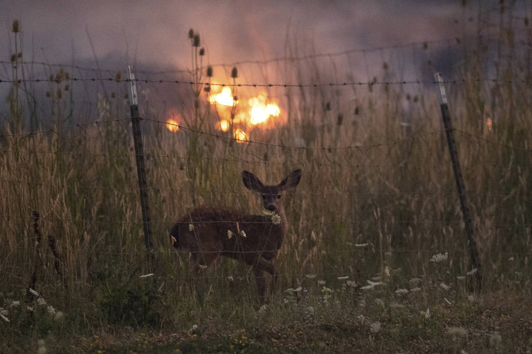 North of San Francisco, a fire threatened homes in an old ranching and farming area near Covelo. About 60 homes were ordered evacuated as the blaze erupted late Tuesday and winds whipped flames through brush, grass, oak, pine and fir near the Mendocino National Forest, officials said.