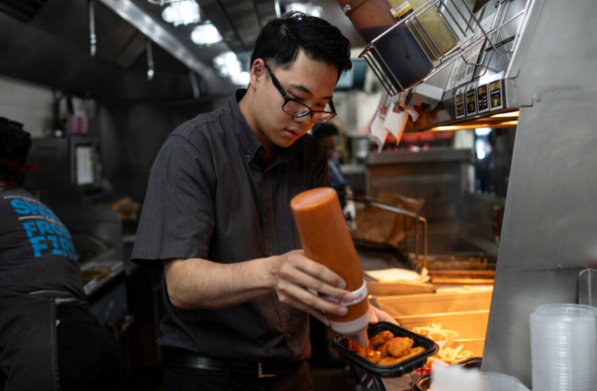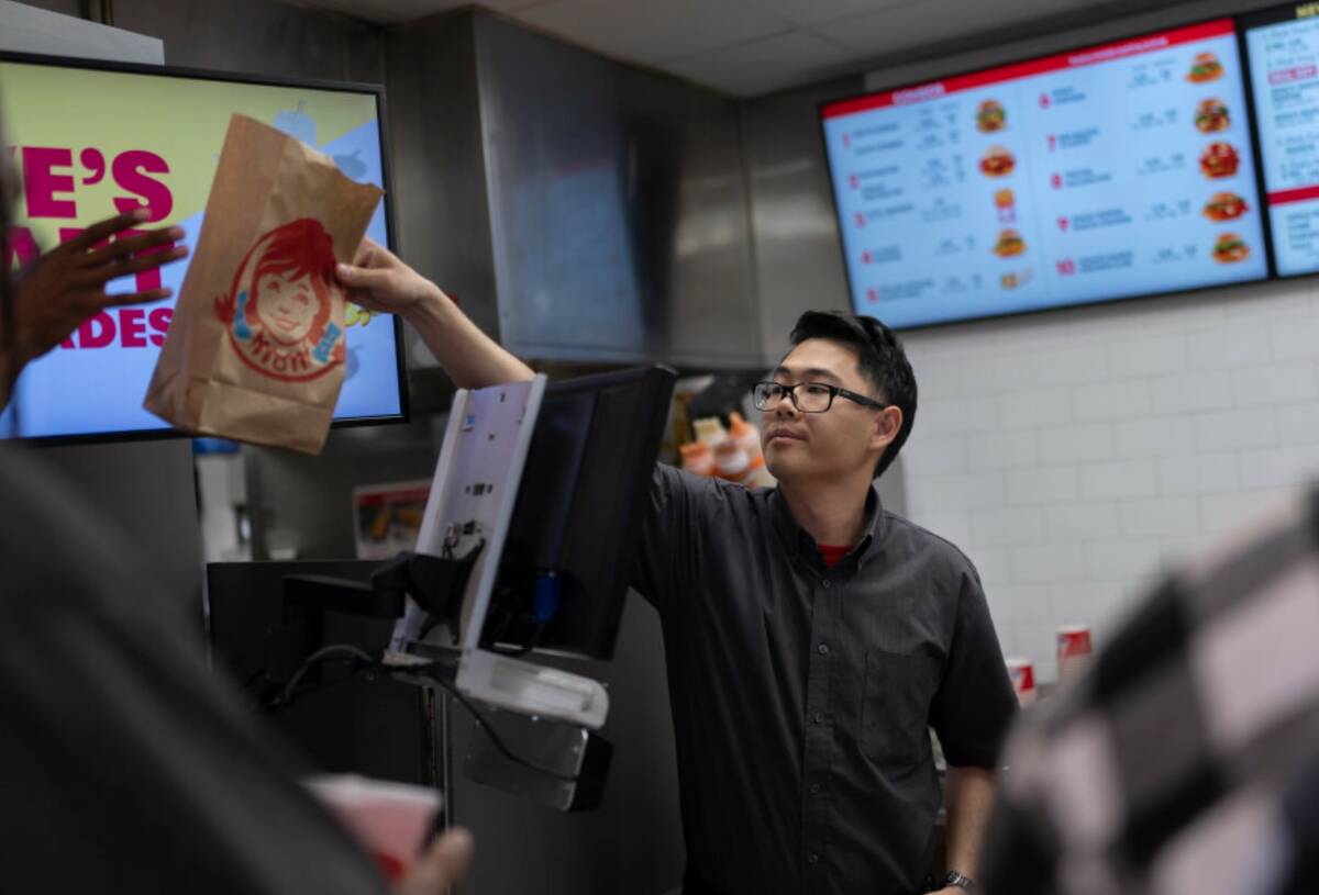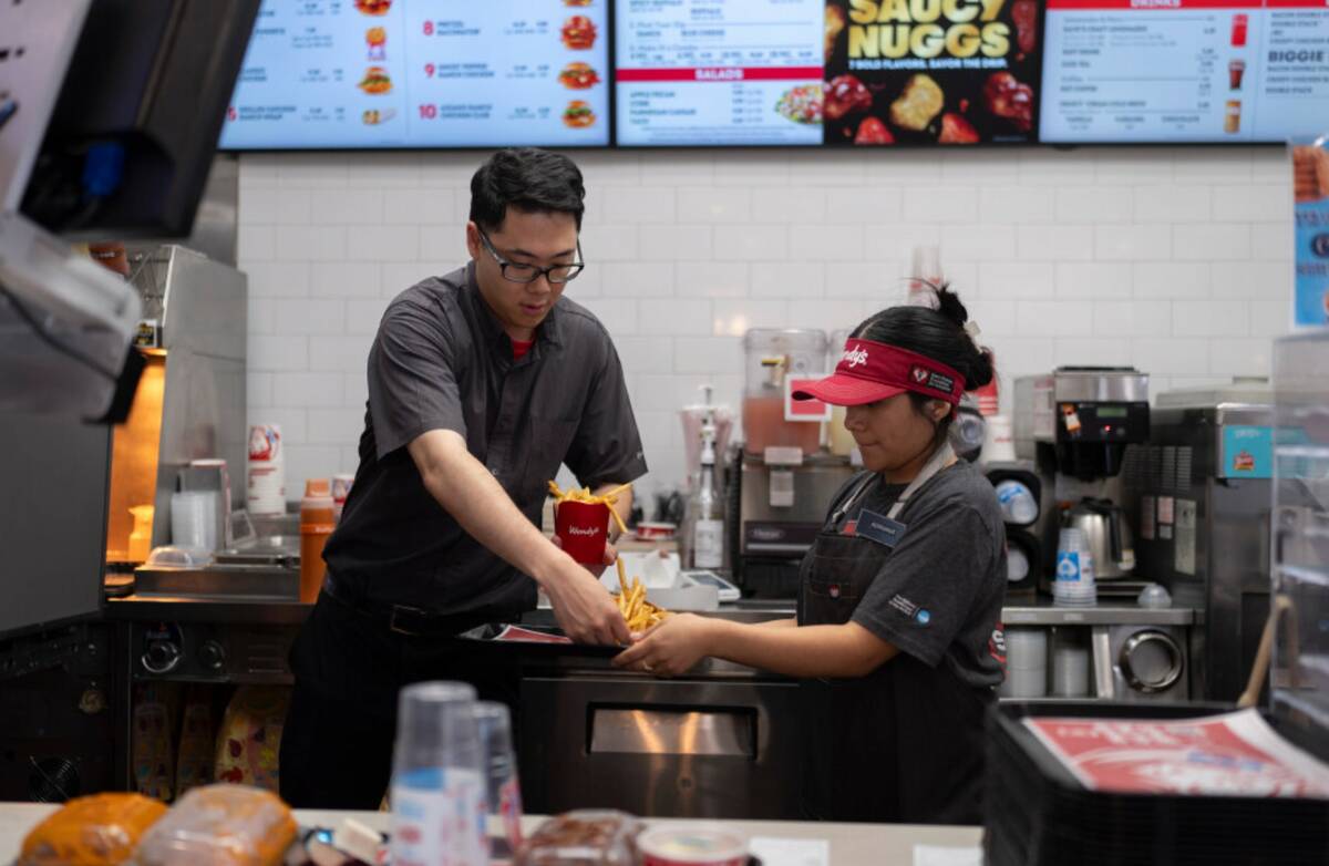 LOS ANGELES — Lawrence Cheng, whose family owns seven Wendy’s locations south of Los Angeles, took orders at the register on a recent day and emptied steaming hot baskets of French fries and chicken nuggets, salting them with a flourish.
