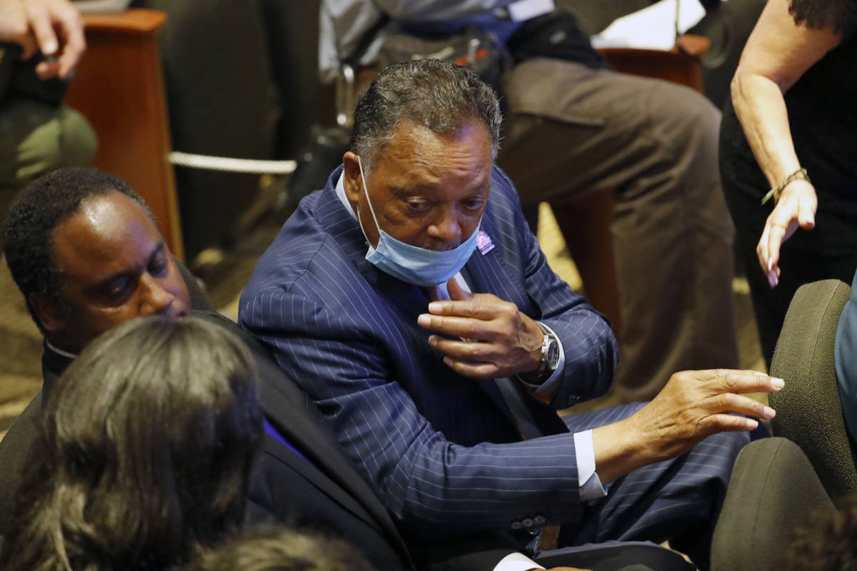 MINNEAPOLIS — Hollywood celebrities, musicians and politicians gathered in front of the golden casket of George Floyd at a fiery memorial Thursday for the man whose death at the hands of police sparked global protests, with a civil rights leader declaring it is time for black people to demand, “Get your knee off our necks!”
