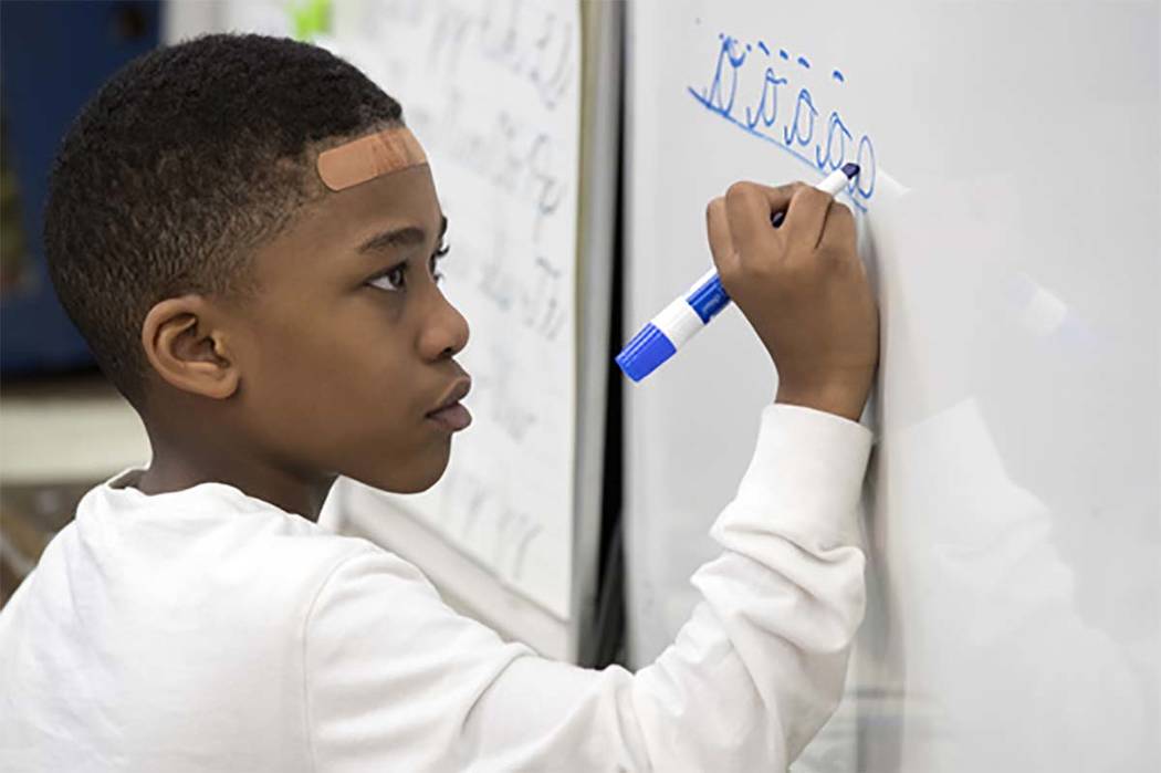 Third-graders at the school beamed as they prepared for a cursive lesson this past week. The 8-year-olds got their markers out, straightened their posture and flexed their wrists. Then it was “swoosh, curl, swoosh, curl,” as teacher Christine Weltner guided the students in writing linked-together c’s and a’s.