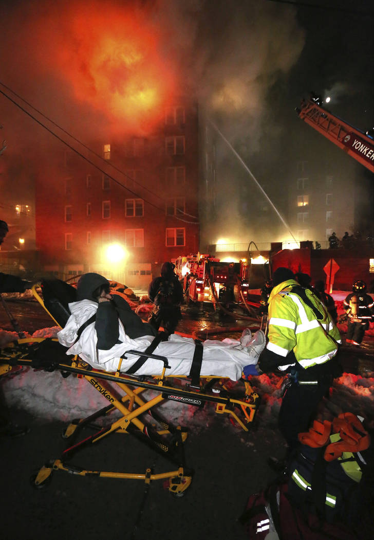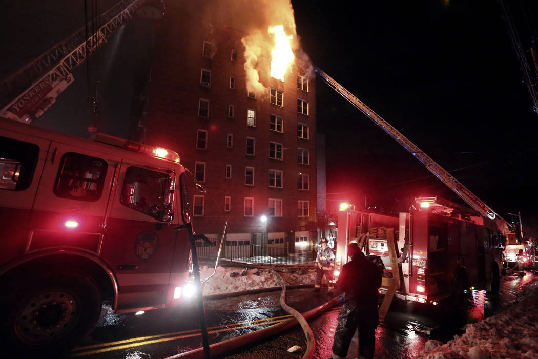 YONKERS, N.Y. — Authorities say a fire at a Yonkers apartment building has left one person dead and forced dozens of people into the cold.