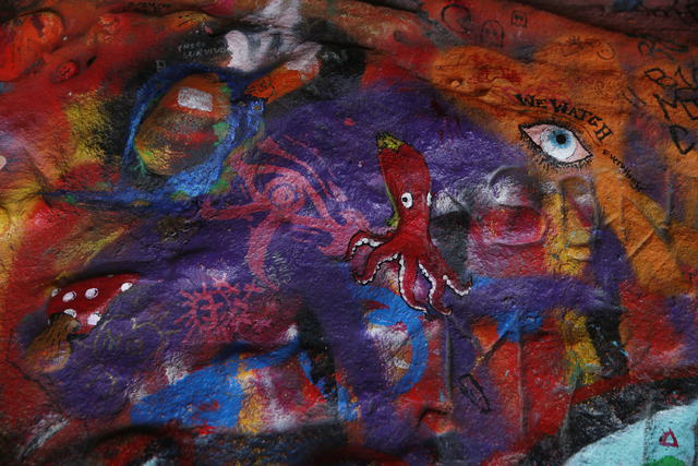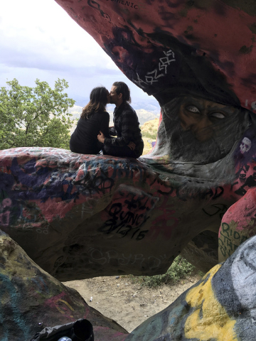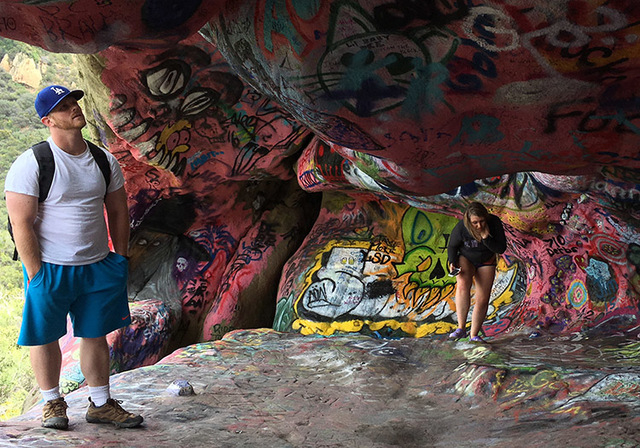 The cave now looks almost tie-dyed with multicolored swirls inside and out. Doors lyrics such as “love me 2 times” and “try to set the night on fire” are scrawled on its walls. There also are declarations like “Use your third eye” and “Try LSD,” along with more crude tags.