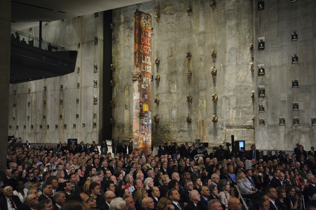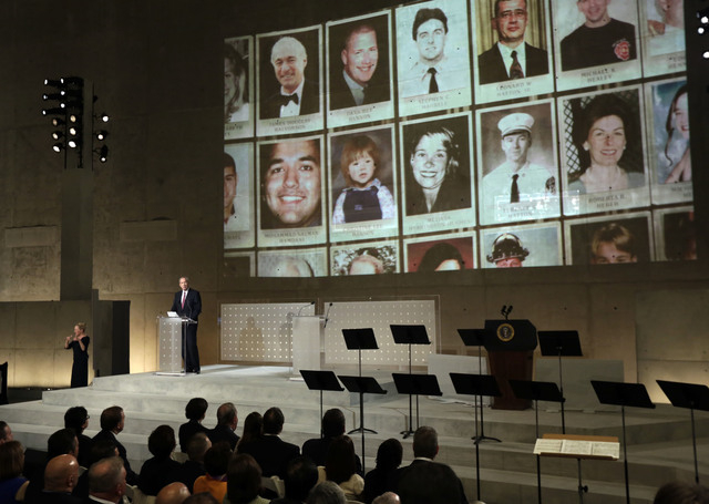 Many in the audience wiped away tears during the dedication ceremony, which revisited both the horror and the heroism of Sept. 11, 2001, the day 19 al-Qaida hijackers crashed four airliners into the trade center, the Pentagon and a field in Pennsylvania. Nearly 3,000 people were killed in an attack that plunged the U.S. into a decade of war in Afghanistan against al-Qaida’s Taliban protectors.