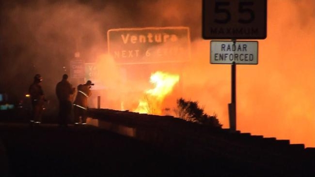 On Saturday afternoon, 10 percent of the 1,200-acre fire was contained, but authorities reopened U.S. Highway 101 in Ventura County. The highway had been closed in both directions in an area that's 70 miles west of downtown Los Angeles.