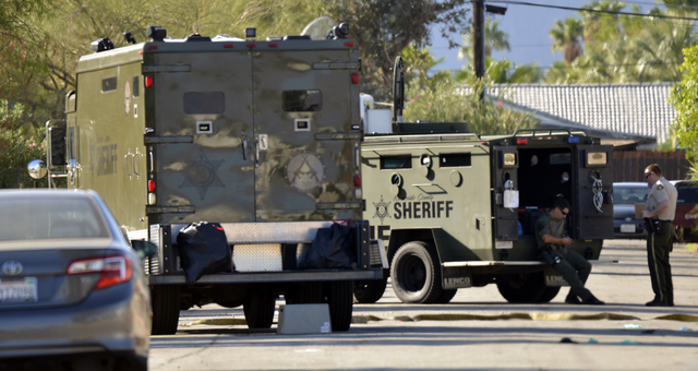 PALM SPRINGS, Calif. — In the minutes before three Palm Springs officers were shot, two fatally, the suspected gunman’s father told a neighbor his son was armed, “acting crazy” and wanted to shoot police.