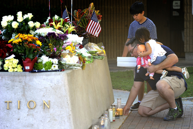 In front of police headquarters, scores of local residents gathered to leave flowers, balloons and cards.