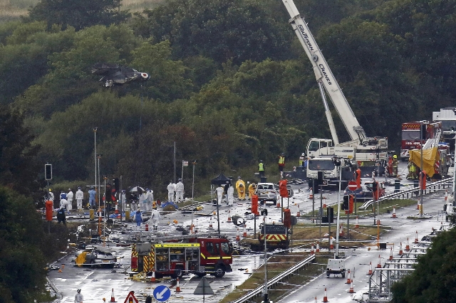 The road, a major artery for traffic along the south coast, remained closed on Monday as wreckage of the aircraft was being removed.