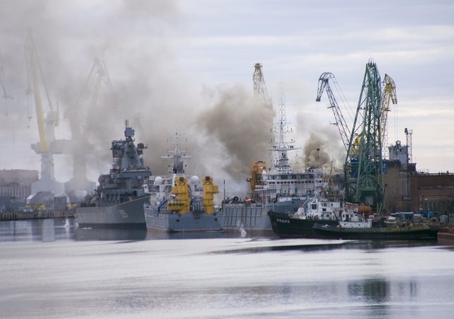 The dry dock where the vessel had been repaired was flooded with water to help put out the blaze.