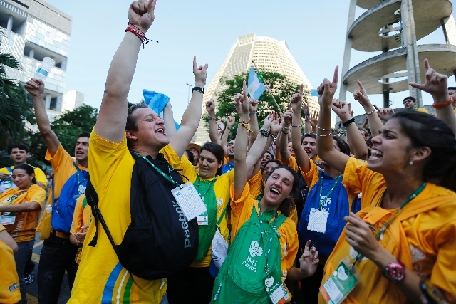 “I’m here for faith! I’m here for joy! And I’m here for the first Latino pope!” Ismael Diaz, a 27-year-old pilgrim wrapped in the flag of his native Paraguay, said as he bounded down the stone sidewalks of Copacabana hours ahead of Francis’ arrival.