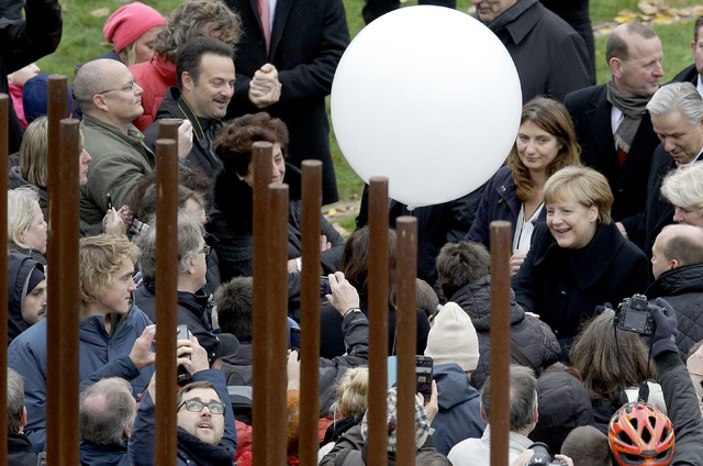 “The fall of the Wall has shown us that dreams can come true,” said Merkel, who grew up in East Germany. “Nothing has to stay the way it is, however big the hurdles are.”
