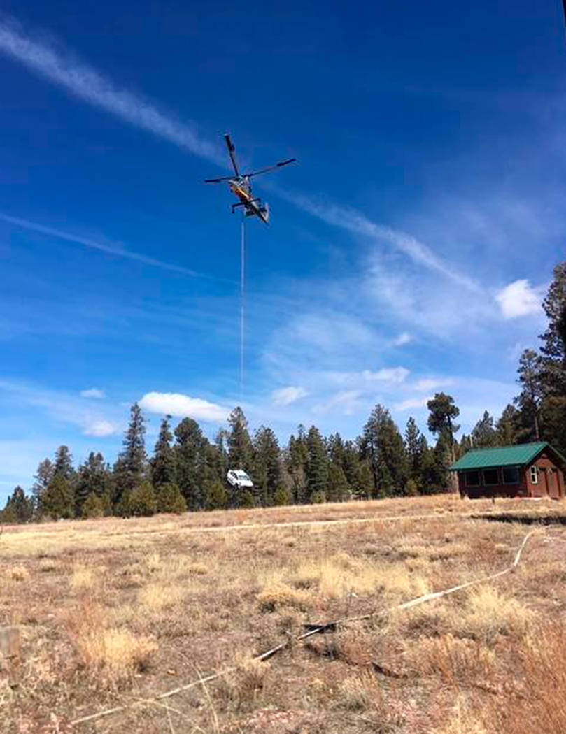 A helicopter flew in equipment this week to drill test and monitoring wells. A drill rig was being assembled Friday near a popular lodging by the creek known as Phantom Ranch, and the work will be completed over the next few days, stopping for mule traffic that shuttles people and supplies.