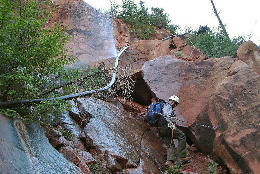 The park’s water supply comes from a natural spring that flows through 12.5 miles of pipeline. But the 1960s aluminum pipeline to the South Rim twists and turns around trails and through rocky terrain, frequently breaking and leaking. Each repair costs an average of $25,000.