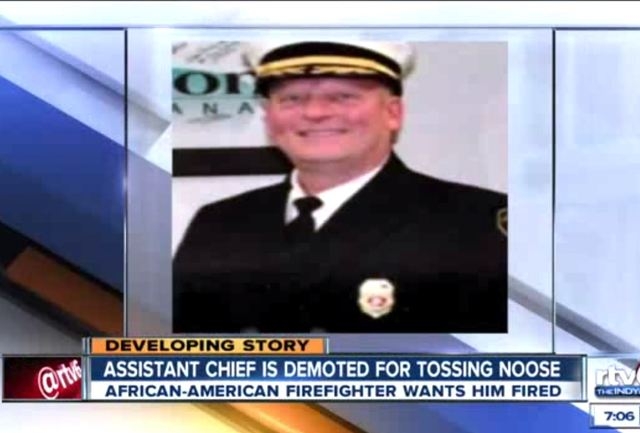 An assistant chief of an Indiana city’s fire department has agreed to a demotion after being accused by a fellow firefighter of tying a noose with rope during a training exercise, local media reported on Wednesday.