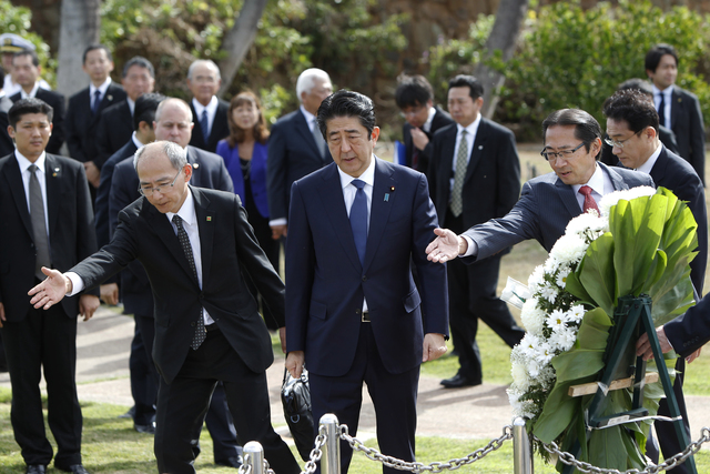 PEARL HARBOR, Hawaii — Japanese Prime Minister Shinzo Abe laid wreaths at various cemeteries and memorials Monday ahead of a visit to the site of the 1941 bombing that plunged the United States into World War II.