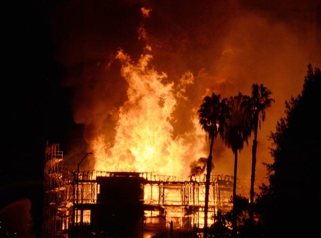 “It’s a large building, about a block long. The whole building is a total loss. The fire did spread into two neighboring buildings,” said David Ortiz, a spokesman for the fire department. “The fire was going across the freeway.”