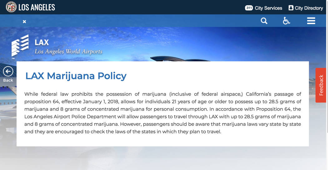 LOS ANGELES — Here’s another thing travelers can consider bringing when a trip takes them through Los Angeles International Airport — marijuana.