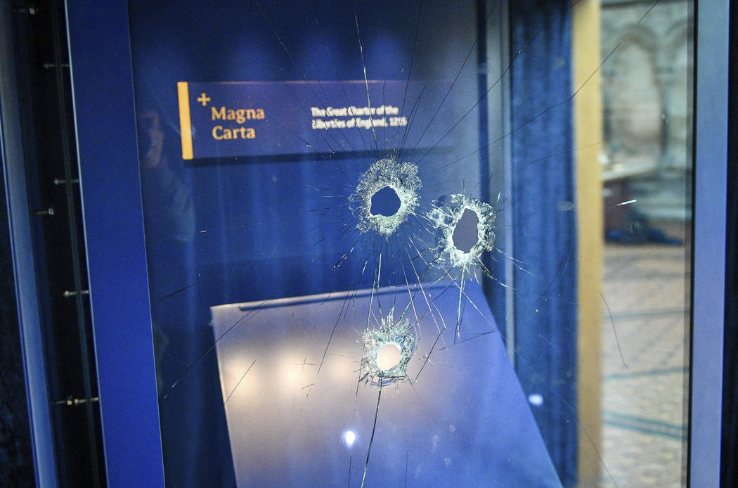 The dean of the cathedral said the suspect was able to smash through one of two protective glass screens housing the precious document. The Rev. Canon Nicholas Papadopulos praised “courageous” staff members who he said were able to restrain the man for 12 minutes before authorities got to the scene.