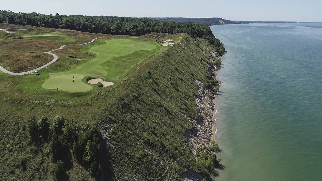 A description of the 12th hole on the Arcadia Bluffs website used to encourage golfers to hit a ball into the water before striking a tee shot by saying: “Go ahead and do it, everyone does.” The newspaper said that was dropped from the website last week.
