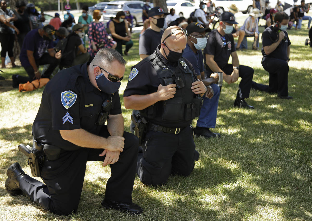 The charges were in crimes committed during sometimes violent protests and looting last weekend and Monday. Since then there has been much less crime and the demonstrations have taken on a more upbeat atmosphere. Local leaders and police have sometimes taken knees with demonstrators.