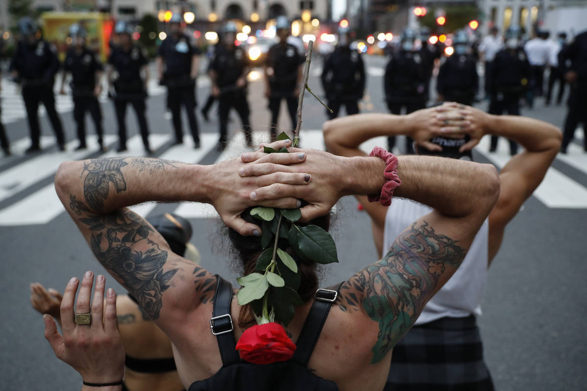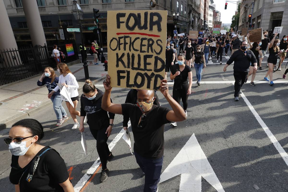 The demonstration was held to protest the death of George Floyd while in police custody in Minnesota.