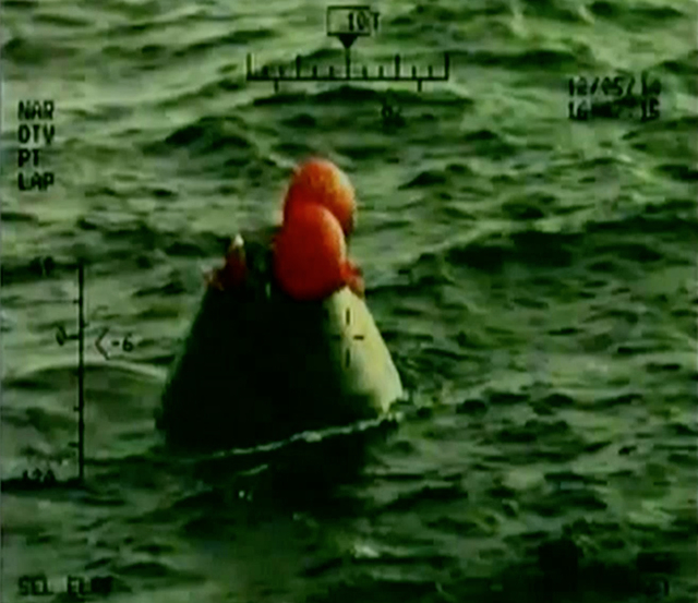 The U.S. Navy pulled up in a pair of ships to recover the spacecraft and transport it to San Diego, 630 miles away. Orion ended up just 1½ miles from the predicted splashdown spot. Only two of the parachutes could be recovered.