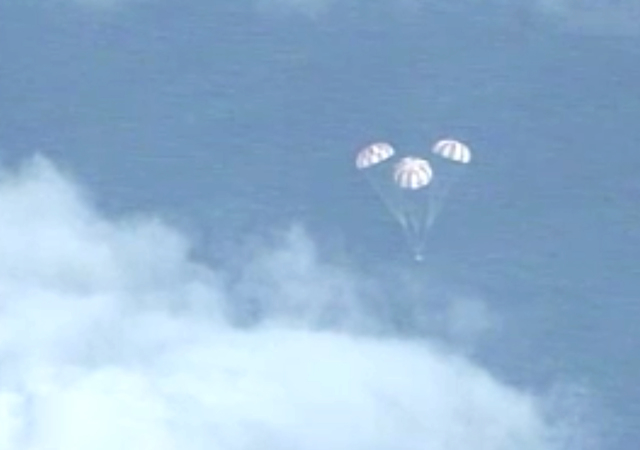 The agency quickly reported positive results: Not only did the capsule arrive intact, all the parachutes deployed and onboard computers withstood the intense radiation of the Van Allen belts surrounding Earth.