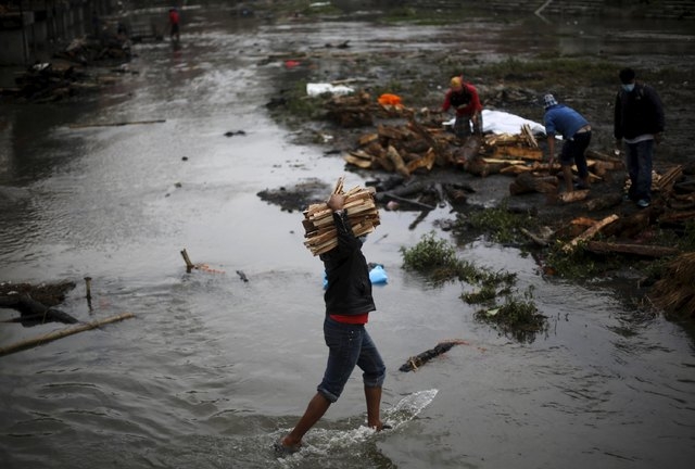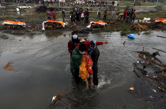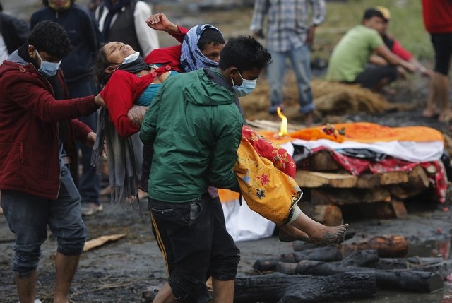 By the Bagmati River, which winds through the city, more than a dozen funeral pyres burned Monday.