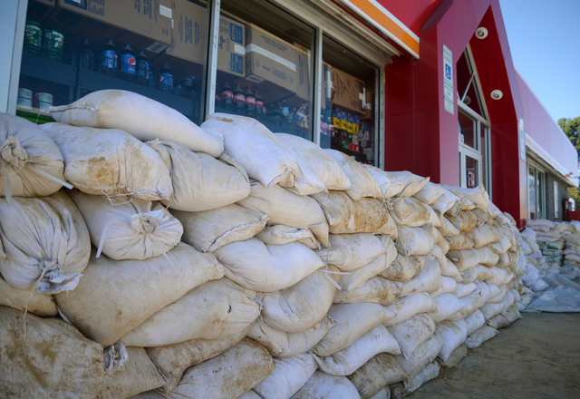 David Baker, whose family owns the River Bank Apartments, said all but one of their tenants had heeded the evacuation order by Tuesday, and he was spending the afternoon putting boards and sealant across the doorways of ground-floor units. A half-inch of water had already pooled in the parking lot, not far from where he stood.