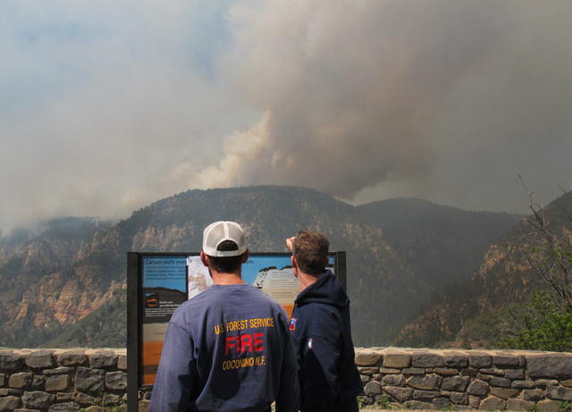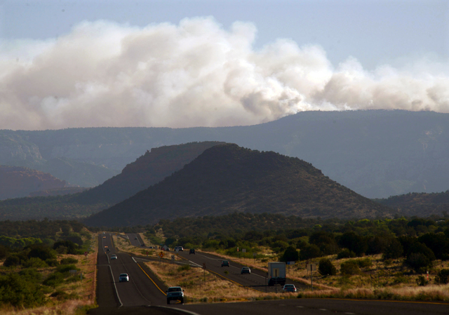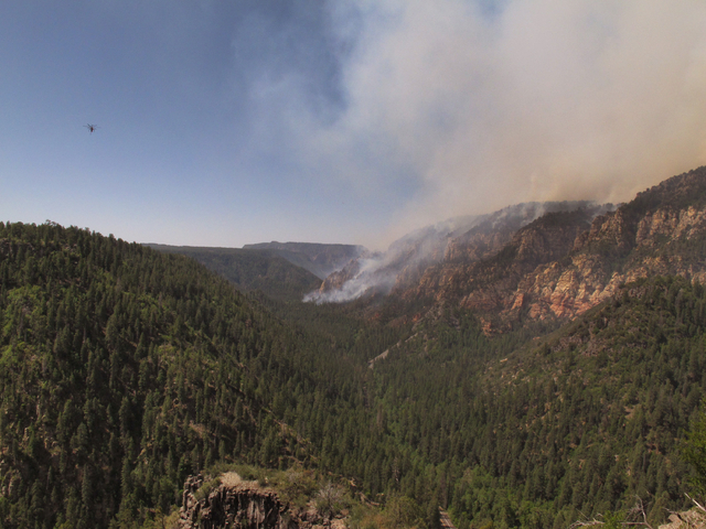 As the latest fire moved up the canyon’s steep walls, it sent up large amounts of smoke and ash and created hazy conditions in Flagstaff, about 15 miles away.
