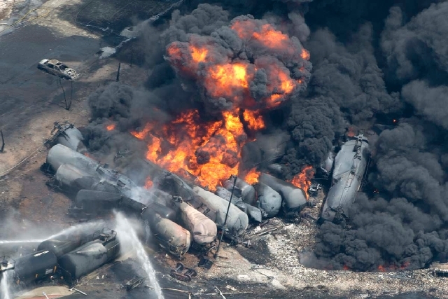 LAC-MEGANTIC, Quebec — Provincial police say one person has died after a train carrying crude oil derailed, triggering several explosions and a huge blaze in a town in eastern Quebec.