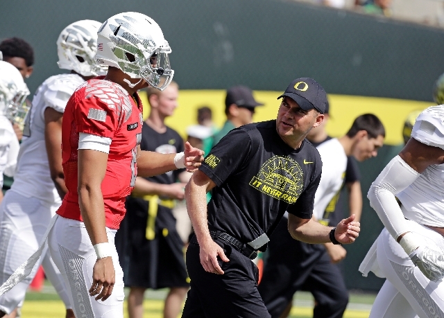 He was replaced by offensive coordinator Mark Helfrich, who will make his debut as head coach on Aug. 31.