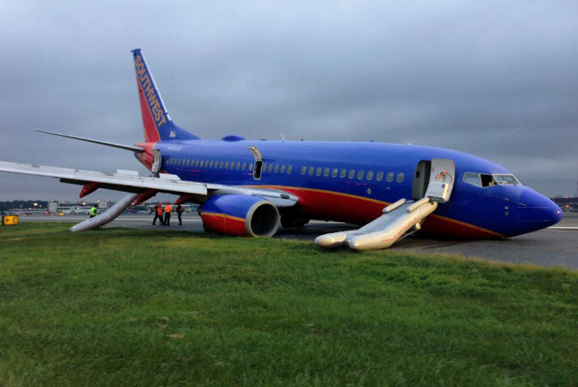 A Southwest Airlines jet that made a hard landing at New York’s LaGuardia Airport touched down on its front nose wheel before the sturdier main landing gear in back touched down, federal investigators said Thursday.