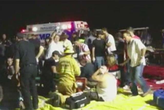 As many as 10,000 Fourth of July revelers were just settling into their seats for the fireworks show at a Simi Valley park when a bright plume of red and white bursts spread across the ground, injuring 28 people and sending others fleeing for safety.