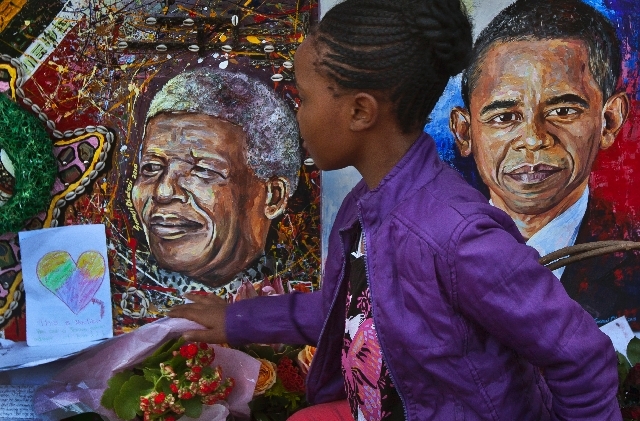 Paying tribute to his personal hero, President Barack Obama met privately Saturday with Nelson Mandela’s family as the world anxiously awaited news on the condition of the ailing 94-year-old anti-apartheid leader.